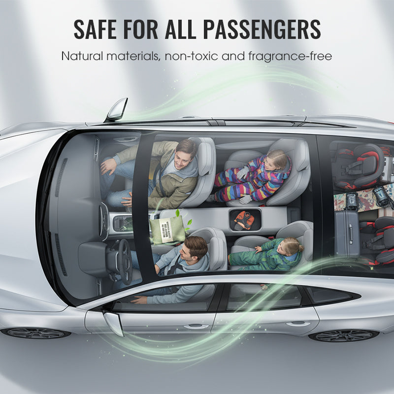 SAFE FOR THE WHOLE FAMILY - Made from natural, non-toxic materials, this air purifier is fragrance-free and completely safe for all passengers, including pregnant women, children, and pets. Enjoy peace of mind knowing your loved ones are protected.