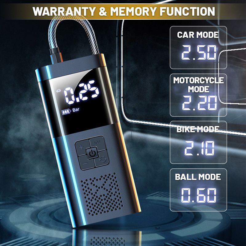 【Memory Function】 Thoughtful design with memory function, once the inflator is running, it will display the last pressure value for you, so you don't need to reset the values.