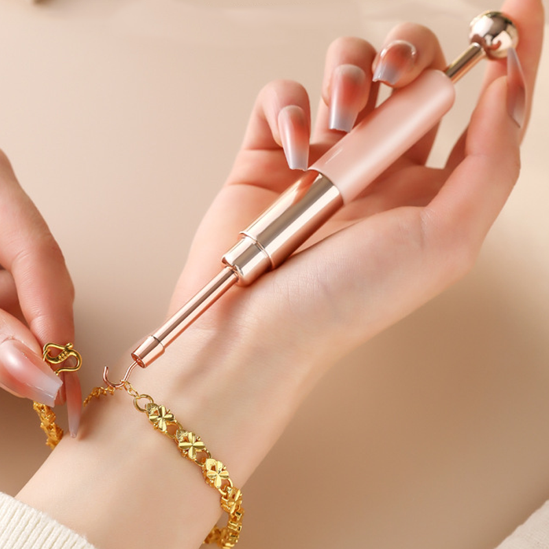 2-in-1 DUAL-HEADED DESIGN- In the front is a retractable hook for hanging bracelets. After unhooking, there is a claw inside to accurately assist in wearing earrings, pearls, etc.
