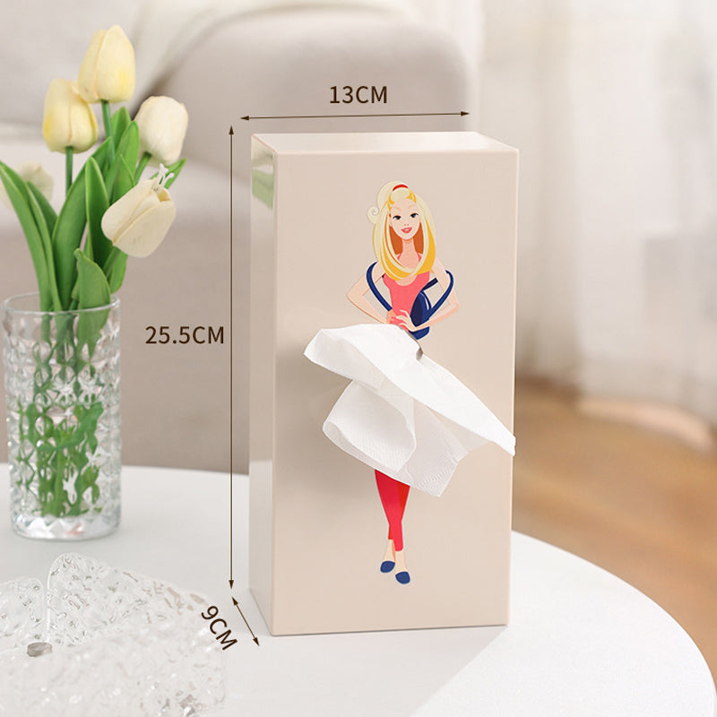CREATIVE MODELING - This whimsical tissue box features a charming long skirt design, perfect for adding a playful touch to any room, making it a delightful decor piece for girls’ bedrooms or play areas.