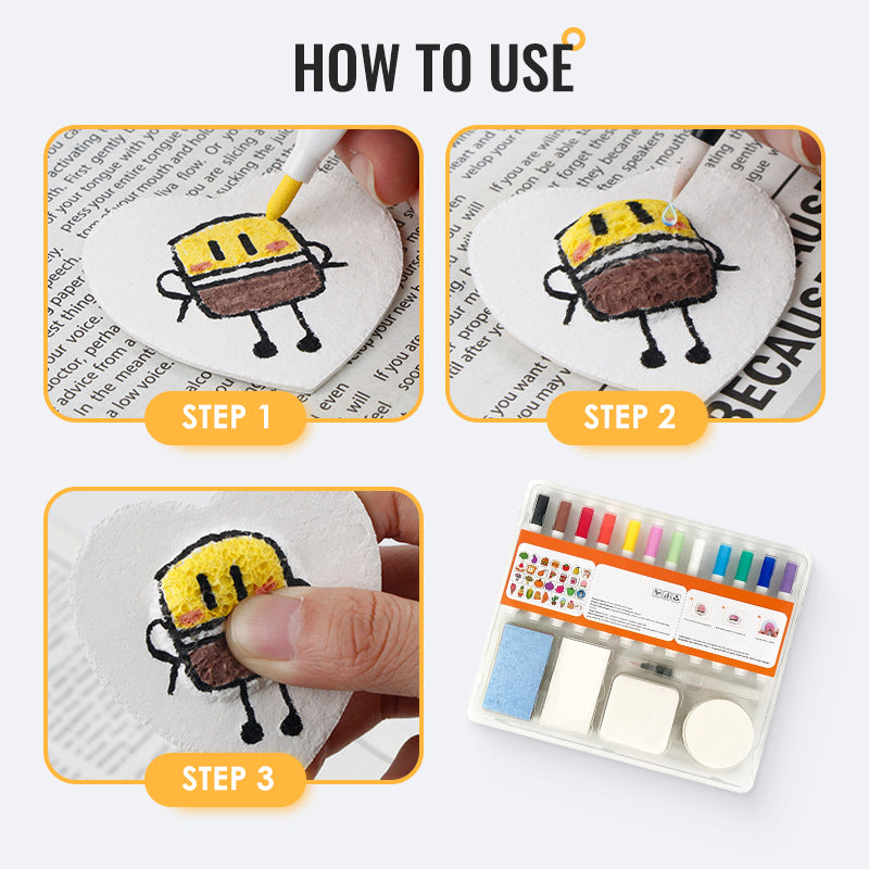 INSTANT 3D TRANSFORMATION: Just add water to watch your flat drawings magically puff up into soft, squeezable 3D creations, offering a fun and interactive art experience that amazes kids and adults alike.