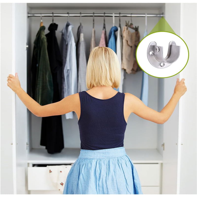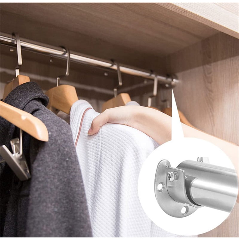 ❤Wardrobe Closet Rod Bracket: Made of stainless steel material, durable, anti-rust, and support long-term use.