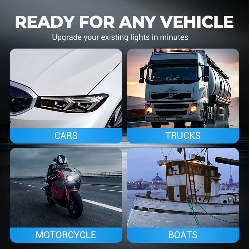 READY FOR ANY VEHICLE – Fits cars, trucks, SUVs, and even boats. The simple installation means you can upgrade your existing lights in minutes, with options for white, yellow, blue, or red lighting to match your style.