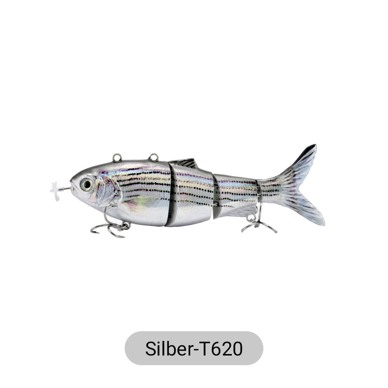 REALISTIC BODY WITH MULTIPLE JOINTS - The flexible and maneuverable body with multiple joints imitates the realistic swimming movements of fish and is very attractive to predatory fish. The metal joints withstand strong biting forces.