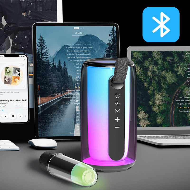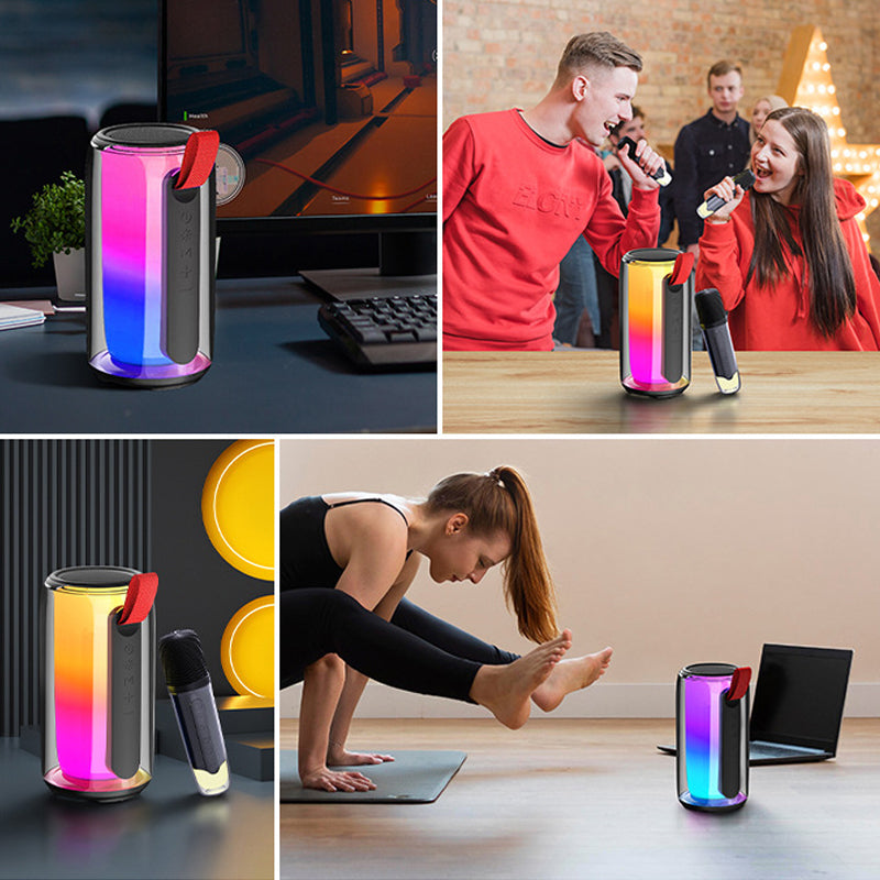 STUNNING LED LIGHT SHOW – The speaker features LED ambient lights with multiple lighting effects that dance to the music, offering an immersive karaoke experience and enhancing the party atmosphere.