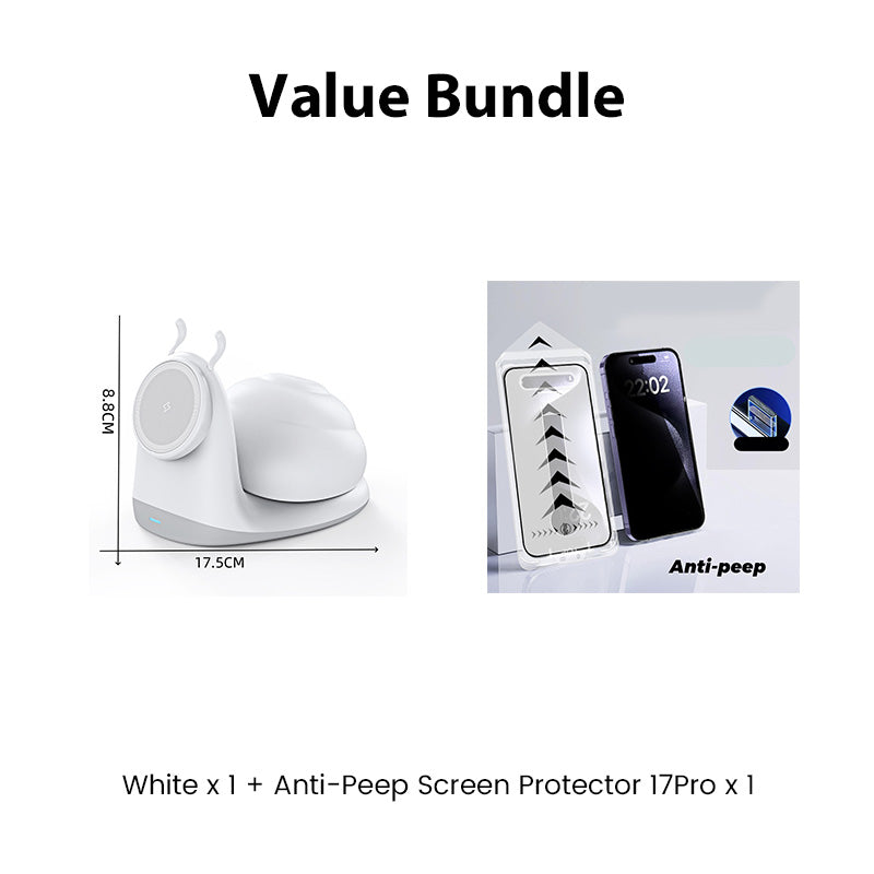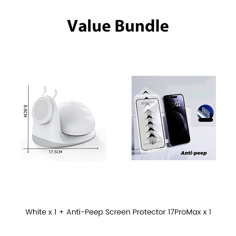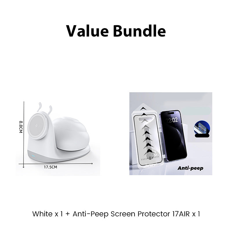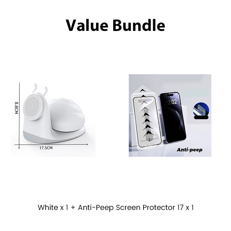 15W Snail-Shaped Magnetic Wireless Charging Station with Night Light