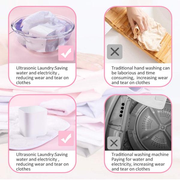 The mini washing machine is compact and has a power of 80W, suitable for 1kg (water) personal laundry. The Ultrasonic Cleaning Tool changes the traditional way of cleaning with domestic washing machines. -