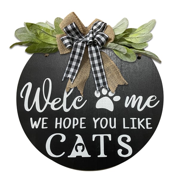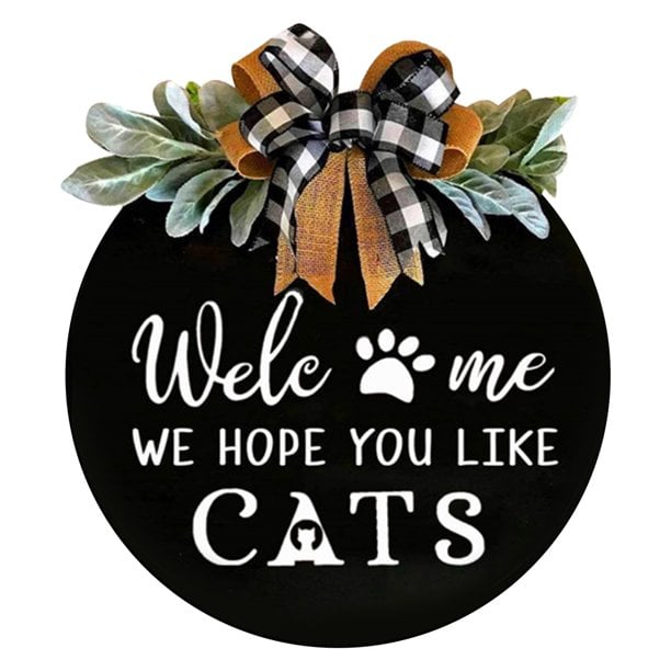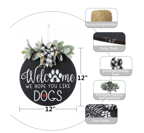 DECORATIVE SIGN: This rustic wooden welcome sign is a great way to add a bit of charm to your front door decor. Made from natural wood for a vintage look, it displays the words "Welcome - We Hope You Like Dogs" in white lettering.